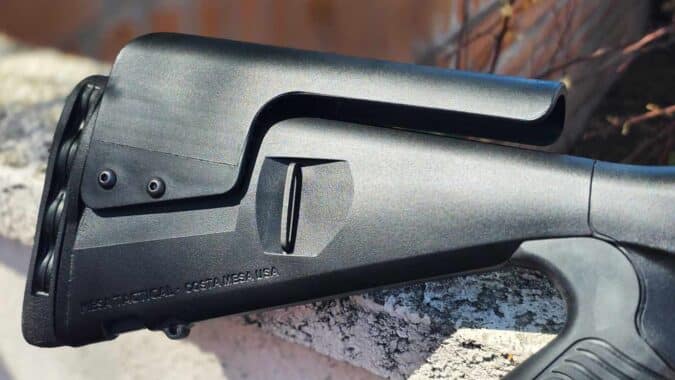 One range session was spent with the OEM MAC stock just to see how it felt. It’s fine. It’s a clone of the Benelli M4 stock, and that stock really isn’t anything to write home about. Once I felt I had done my journalistic duty by giving it a try, I ditched it like a bad date and installed the Mesa Tactical Urbino.
