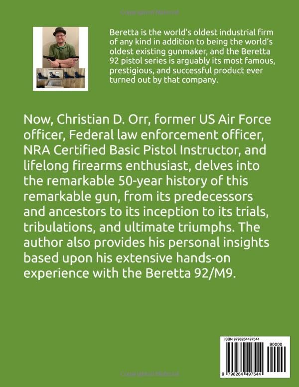 “Beretta is the world’s oldest industrial firm of any kind in addition to being the world’s oldest existing gunmaker, and the Beretta 92 pistol series is arguably its most famous, prestigious, and successful product ever turned out by that company. Now, Christian D. Orr, former US Air Force officer, Federal law enforcement officer, NRA Certified Basic Pistol Instructor, and lifelong firearms enthusiast, delves into the remarkable 50-year history of this remarkable gun, from its predecessors and ancestors to its inception to its trials, tribulations, and ultimate triumphs. The author also provides his personal insights based upon his extensive hands-on experience with the Beretta 92/M9.”