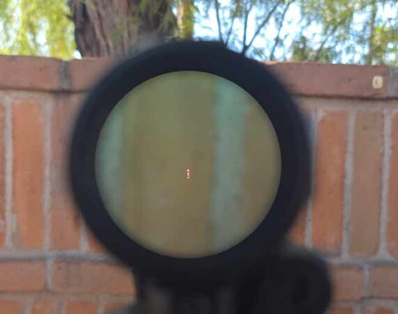 The major downside to a red dot + magnifier has always been the fact that what you want in a red dot is not always what you want in a magnified optic. Red dots are commonly sport larger reticles designed for close-up use and with the brightness set between “pretty” bright and “Eye of Sauron” bright. A magnified optic is the opposite. Ideally, your reticle is smaller and not as bright, so it doesn’t blind you. Use a max brightness green dot and flip down a 6x magnifier, and you might not need LASIK anymore.