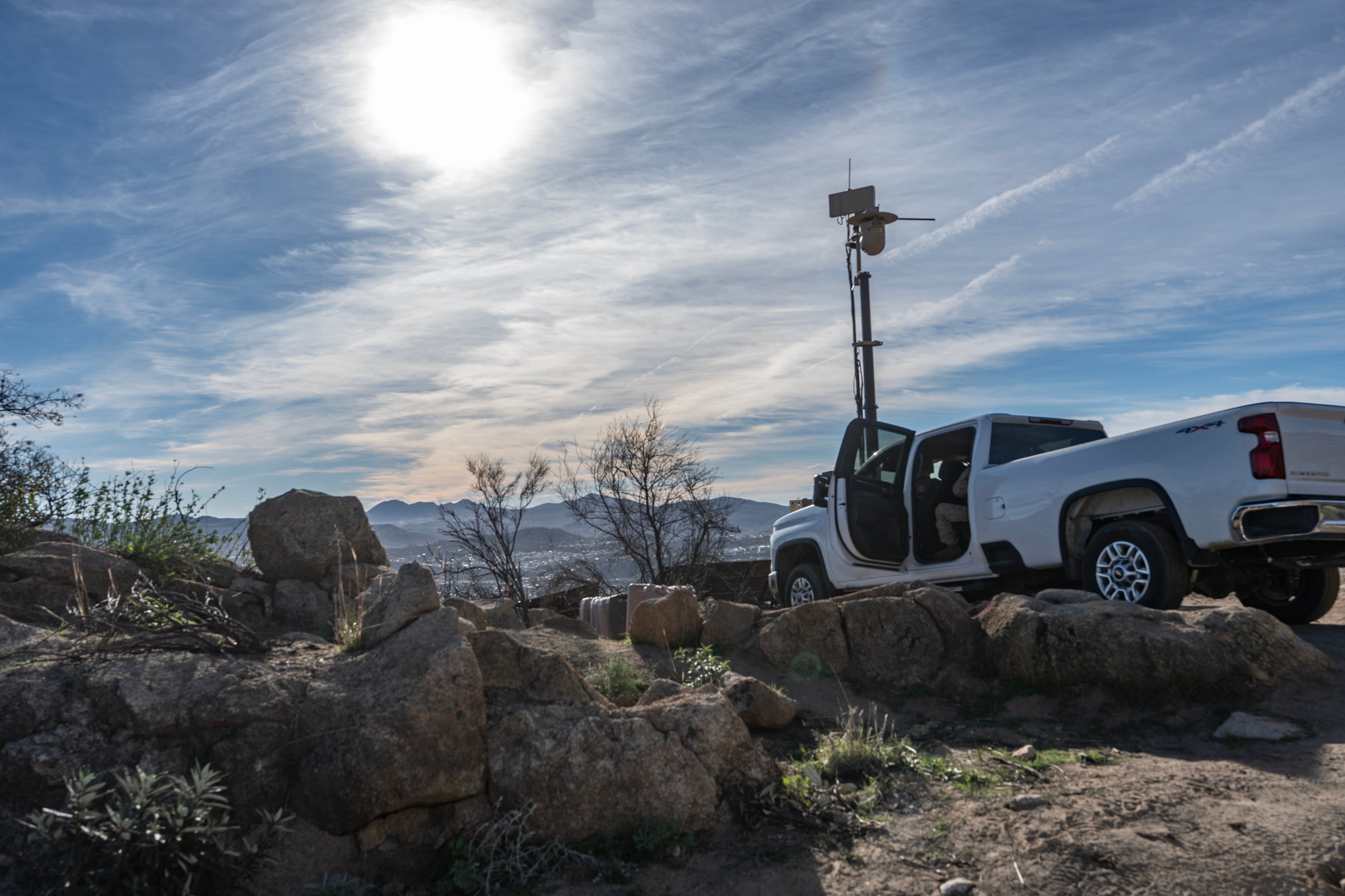 Next to the truck was a high-tech camera system, equipped with infrared and radar, called a G-BOSS — short for ground-based operational surveillance system. It was originally designed to detect IEDs in Iraq and Afghanistan. Now it watches the desert for migrants.