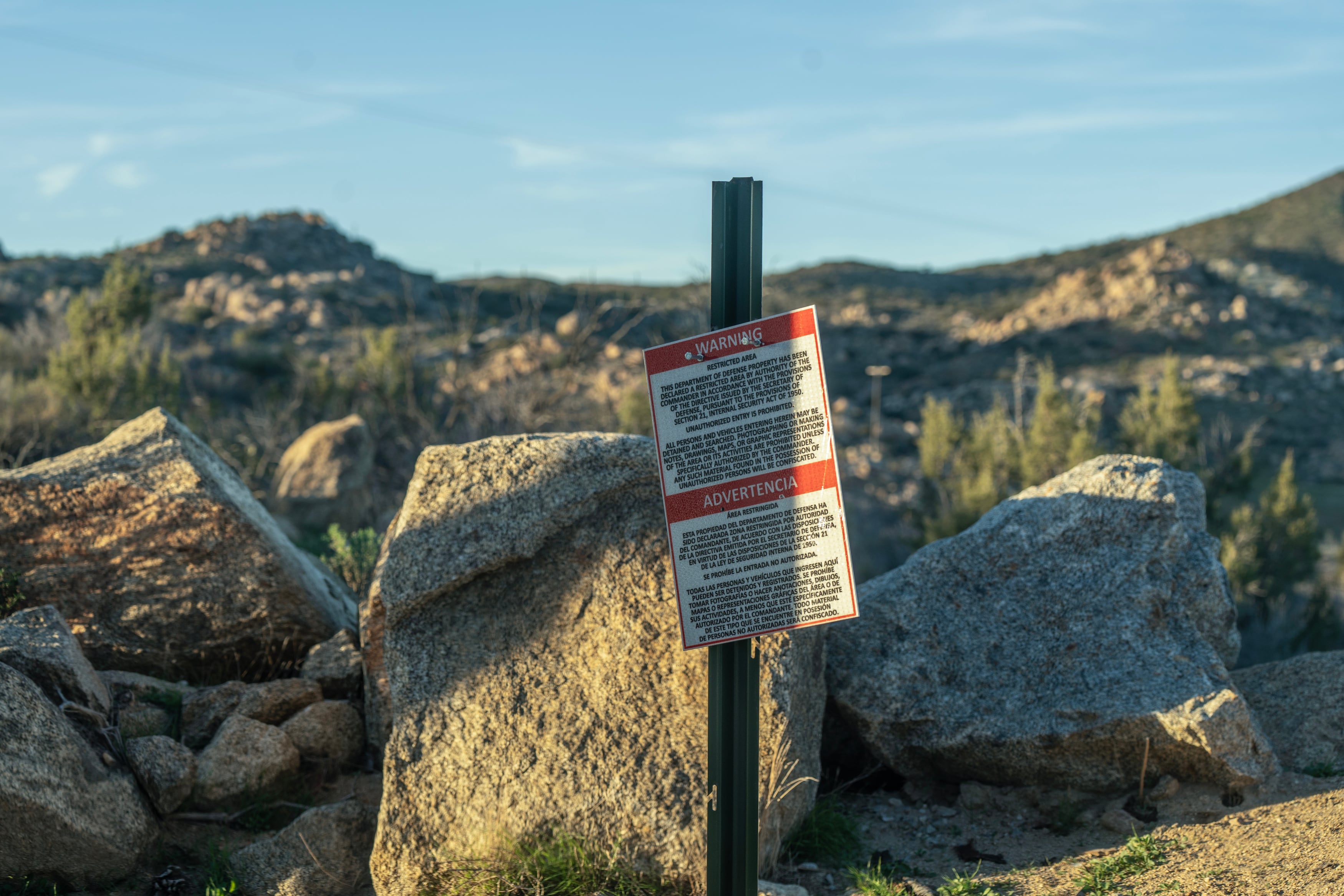 “WARNING,” they say in English and Spanish. “This Department of Defense property has been declared a restricted area. … Photographing or making notes, drawings, maps, or making graphic representations of the area or its activities are prohibited.”