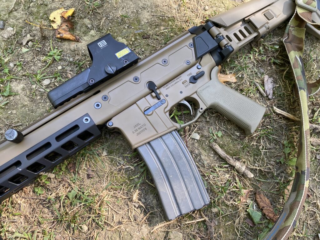 This rifle is a beast, and I mean that in the best way possible. It’s a cross between an AK-47, a SCAR, and an AR-15. It borrows the gas piston system from the AK, the bolt and stock profile from the SCAR, and all the familiar controls of an AR-15.