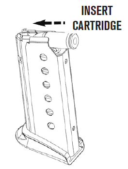 Unlike a standard pistol magazine where cartridges are pushed forward under the feed lips, the Bond Arms BullPup9 magazine is loaded in the opposite direction. Each round is inserted rearward, snapping the rim of the case back under the feed lip — just like shown in the diagram above.