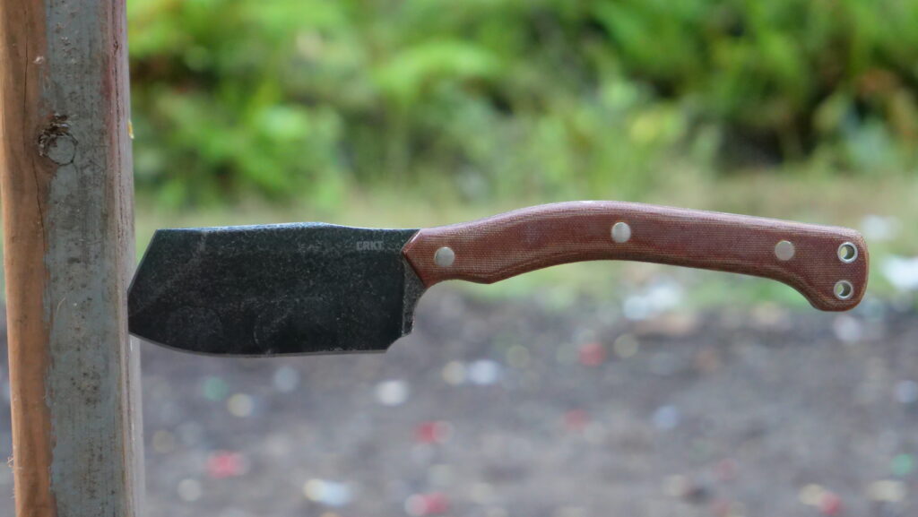 The full-tang handle delivers the right mix of security and balance, with pronounced jimping and contours that keep your hand where it belongs—even when things get muddy, bloody, or just plain ugly. The handle material is billed as “resin-infused fiber,” which is CRKT’s marketing way of saying micarta-esque. Whatever you call it, the stuff feels warm and grippy, not plasticky.