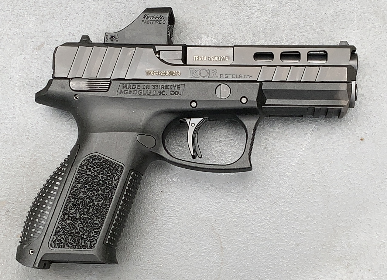 Before us, we have one of the newer versions, the KOR FX-9 RP. Again, I can almost hear a collective “Huh? KOR?” coming from Readerland. I said the same thing when my son, who is always tuned in to what’s new in the 9mm world, mentioned it to me as something I might want to review. Never one to turn down a review, I checked into it, and here it is.