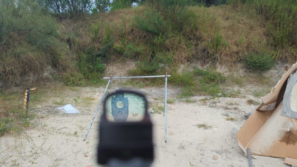 At fifty yards, I was landing the majority of my hits on an IPSC steel target. I was going six for six at times, but at a minimum, I was landing five out of six on target. Keep in mind, this is with a snub-nose revolver with a double-action-only trigger.