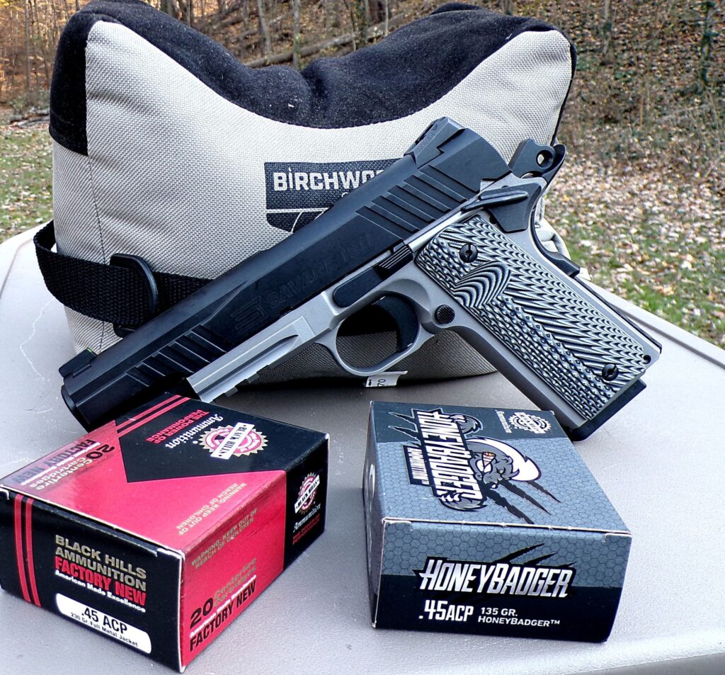 I grabbed the gun and three types of ammo… Black Hills supplies ammo for my reviews, so I took along a box of 230-grain FMJ and their 135-grain HoneyBadger load.